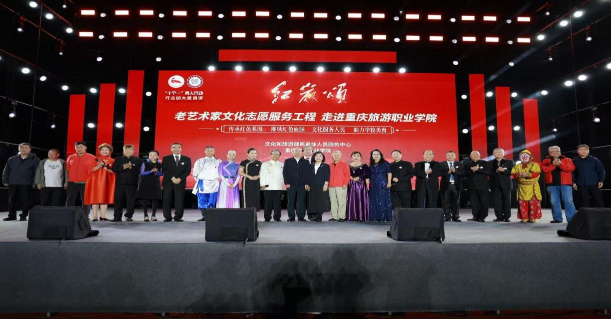 为深入贯彻落实党的二十届三中全会关于“建立优质文化资源直达基层机制”部署要求以及《教育部办公厅、文化和旅游部办公厅、财政部办公厅关于开展2025年高雅艺术进校园活动的通知》精神,持续送优质文化资源直达基层和促进高校美育工作,文化和旅游部离退休人员服务中心老艺术家文化志愿服务工程团队于10月14日至18日赴重庆旅游职业学院,开展了一系列精彩纷呈的文化志愿服务活动。此次活动以“文化服务人民助力学校美育”为主题,通过高质量的综艺演出和艺术辅导,为学院师生带去了一场艺术盛宴,也为校园文化建设注入了新的活力。