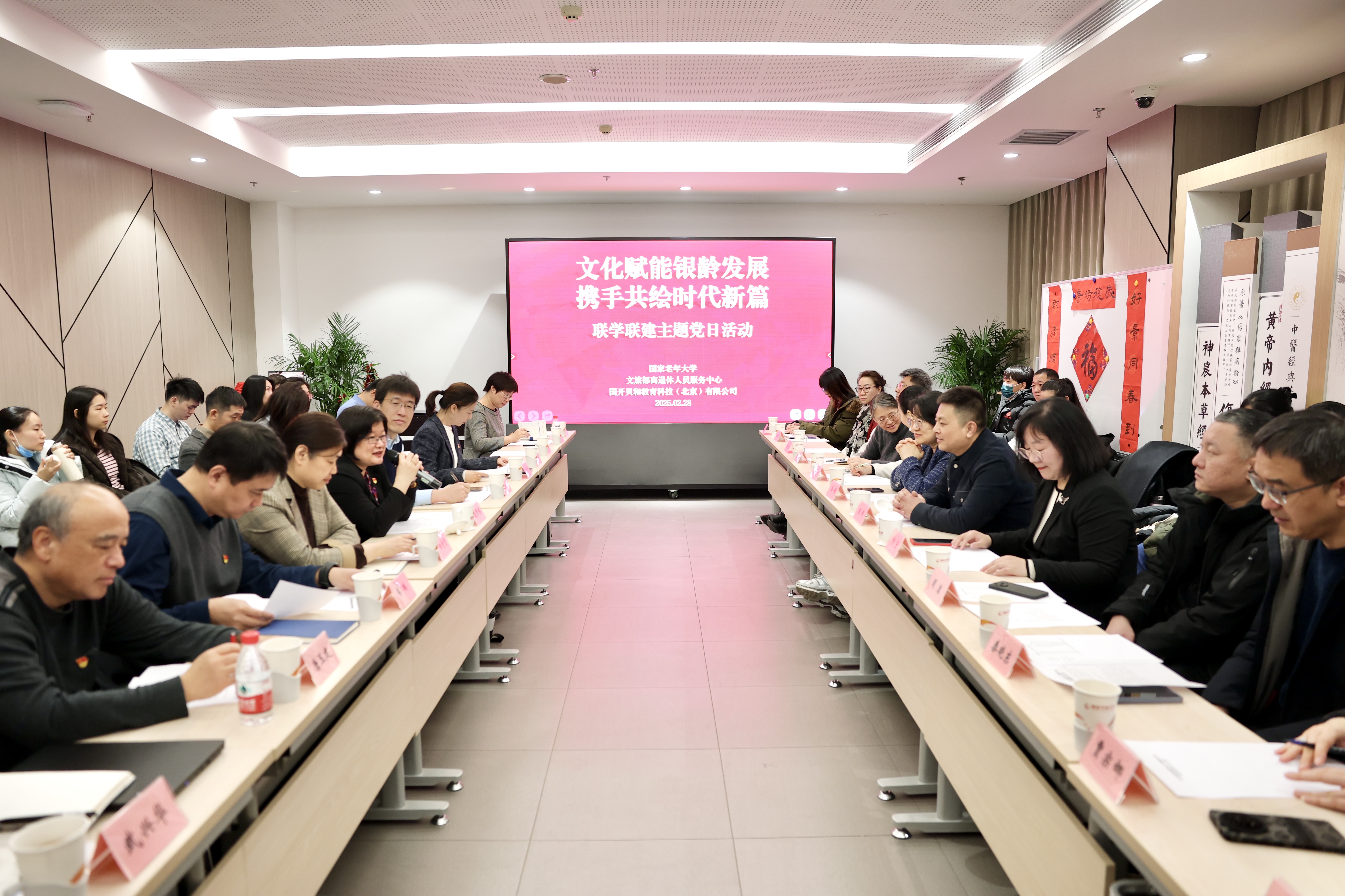 2025年2月28日,文化和旅游部离退休人员服务中心党委书记陈锋,纪委书记、副主任杨宁带队赴国家老年大学开展调研交流活动,就老年教育体系建设、文化养老服务创新等工作进行深入交流。国家老年大学党委委员、副校长范贤睿及相关部门负责人陪同调研。